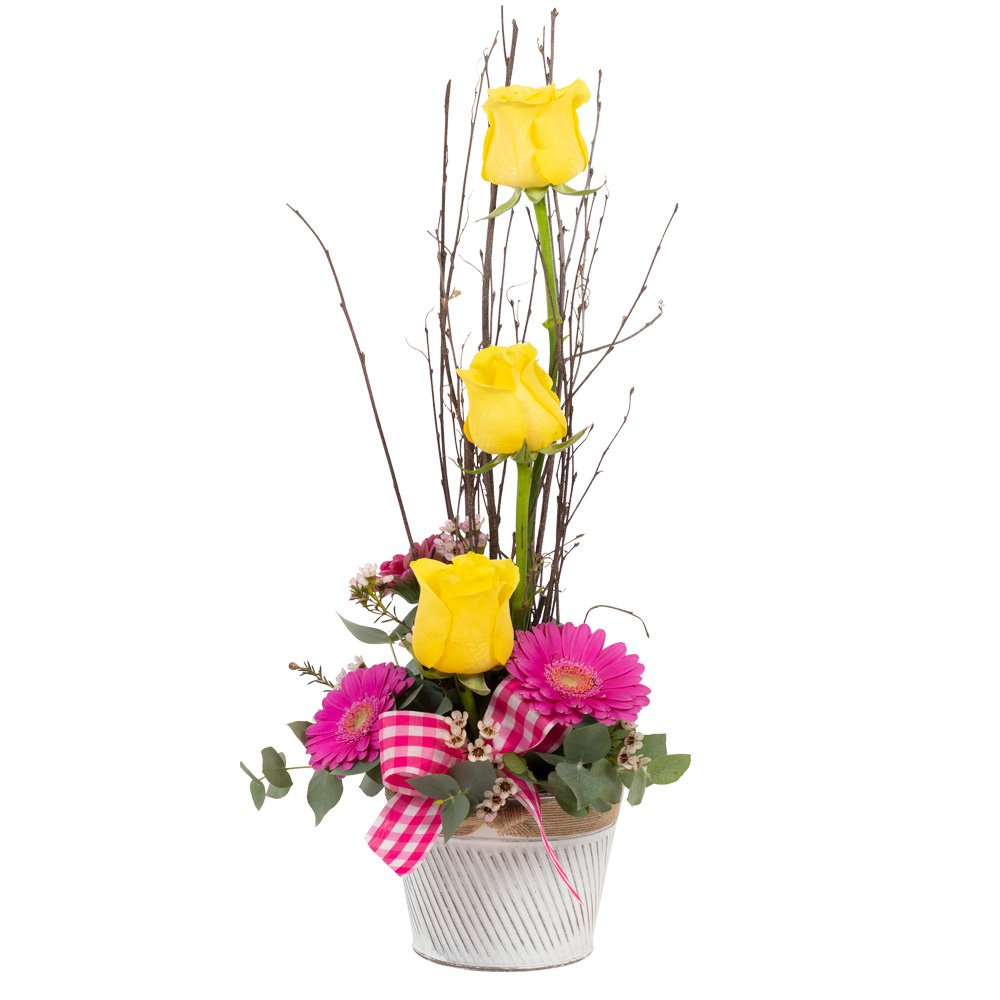 Available in a yellow colourway, this delightful arrangement is sure to make Mum smile on Mother’s Day. Arranged and delivered in a complementary petite container.