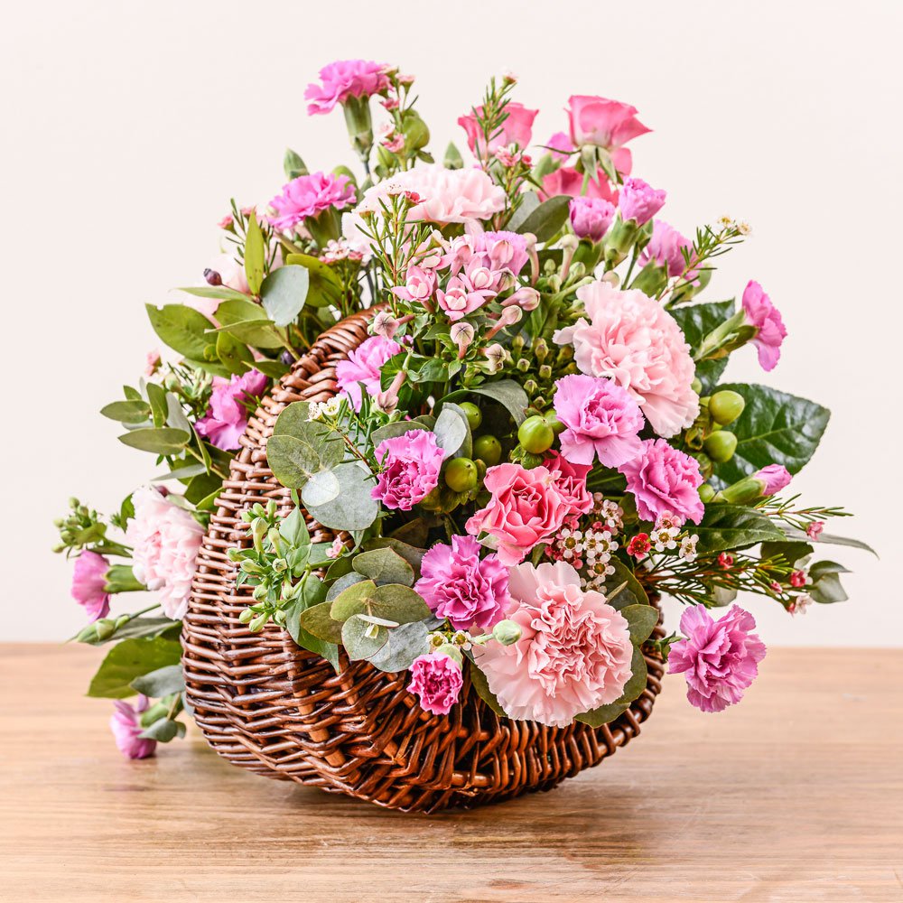 Traditional and perfect. A lovely flower gift delivered in a basket. Perfect for any occasion such as an anniversary.